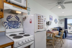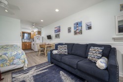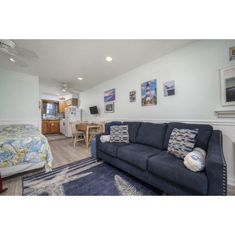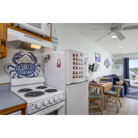 The Windjammer located ocean front on 46th street offers that wonderful retro Ocean City feel. This ground level efficiency, one bath unit with one double bed can sleep two and provides the perfect setting for a memorable visit to Ocean City, Maryland. A one-of-a-kind family vacation destination, each unit is individually owned and decorated offering the guest a unique feel and comfortable stay with direct beach access. Enjoy the excusive private sand patio for grilling, picnics and play, free WIFI, flat screen TVs. Our condos are stocked and ready for you with bath towels, linens, cookware and utensils. Don't pass up on the chance to stay at your home away from home at the beach! This unit permits up to two dogs, 50lb limit for one pet or 70 lb combined limit for two pets. There is an additional $35.00 per day pet fee. Although pets are allowed all season, absolutely no pets permitted on the private sand patio courtyard. There is a designated pet area supplied with waste bags just a minute's walk away. An on-site laundry room is available for guests at no additional cost from 9am to 5pm. Property rents any 2 nights all season! Non Smoking/Non Vaping This property owner does not permit group rentals to guests under the age of 21. We make every effort to ensure the accuracy of our properties including photos, descriptions, pricing and amenities shown above. Although they are deemed reliable, they cannot be guaranteed. Please be advised we do not advertise any properties on Craig's list. If you see the content of our listings on Craig's list, it is not a legitimate advertisement from Central Reservations.