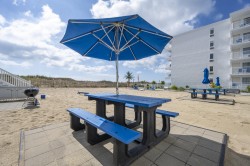 The Windjammer Condominiums located ocean front on 46th street offer that wonderful retro Ocean City feel while providing the perfect setting for a memorable visit to Ocean City, Maryland. This one bedroom, one bath unit can sleep a family of four with a queen in the bedroom and a queen sleeper sofa in the living room. A one- of-a-kind family vacation destination, each unit is individually owned and decorated offering the guest a unique feel and comfortable stay with direct beach access and ocean views. Enjoy the exclusive private sand patio for grilling, picnics and play, free WiFi, and flat screen TVs. Our condos are stocked and ready for you with towels, linens, cookware and utensils. Don't pass up on the chance to stay at your home away from home at the beach! This unit permits up to two dogs, 50 lb limit for one pet or 70 lb combined limit for two pets. There is an additional $35.00 per day pet fee. Although pets are allowed all season, absolutely no pets on the private sand patio courtyard. There is a designated pet area supplied with waste bags just a minute's walk away. An on-site laundry room is available for guests at no additional cost from 9am to 5pm. Property rents any three nights all season. Non Smoking/Non Vaping. This property owner does not permit group rentals to guests under the age of 21. We make every effort to ensure the accuracy of our properties including photos, descriptions, pricing and amenities shown above. Although they are deemed reliable, they cannot be guaranteed. Please be advised we do not advertise any properties on Craig's list.