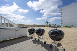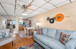 NEWLY RENOVATED ideal 2nd floor unit in the Windjammer Condominiums located oceanfront on 46th street (nice view of ocean above sand dune but with only one flight of stairs). All NEW bedroom and living room furniture with comfortable Serta Perfect Sleeper queen bed with electric adjustable base. An additional bedroom AC unit makes for comfortable sleeping on hot summer nights. New pull-out queen sofa bed has foam mattress (versus uncomfortable springs and bar). A one-of-a-kind family vacation destination, each condo is individually owned and decorated offering the guest a unique feel and comfortable stay with direct beach access and ocean views. Enjoy the excusive private sand patio for grilling, picnics and play, free WiFi, flat screen TVs. Don't pass up on the chance to stay at your home away from home at the beach! An on-site laundry room is available for guests at no additional cost from 9am to 5pm. Property rents any 3 nights! No parties, no pets, no smoking/vaping. Both linens, bath towels, and starter paper products provided as a courtesy. This owner offers a $50 military discount and a 5% Repeat Customer Loyalty discount. Property owner does not permit group rentals to guests under the age of 21 and does not allow pets. We make every effort to ensure the accuracy of our properties including photos, descriptions, pricing and amenities shown above. Although they are deemed reliable, they cannot be guaranteed. Please be advised we do not advertise any properties on Craig's list.