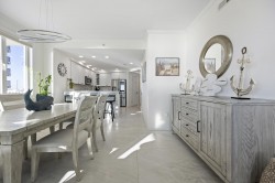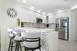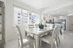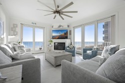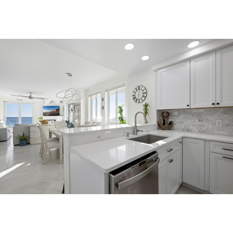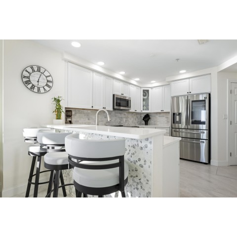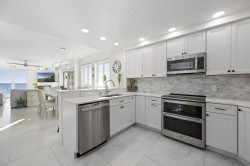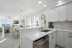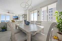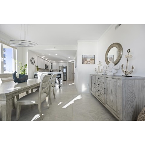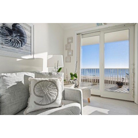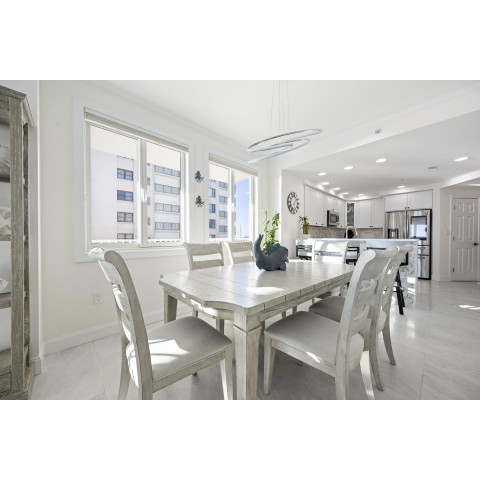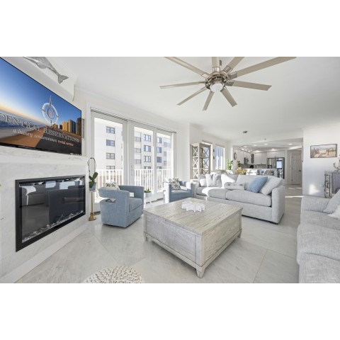 Welcome to Adagio 403, a residence that stands at the very top of what this sought-after oceanfront building has to offer. This spectacular end unit is more than a vacation home — it is a true coastal retreat, finished with luxurious details, high-end craftsmanship, and sweeping views that redefine what an oceanfront stay can be. With three bedrooms, three bathrooms, and room for eight guests, it delivers comfort, space, and elegance in every corner. The kitchen is a chef’s delight, featuring premium appliances, a double oven, stainless steel finishes, and a Flex Brew coffee maker set within a beautifully designed layout that opens to the living area. Here, guests can unwind by the fireplace or step directly onto the expansive L-shaped balcony, where panoramic ocean views set the tone from sunrise to evening. The end-unit location amplifies both light and privacy, creating a bright, elevated living experience that feels both refined and inviting. The primary suite is a resort-like sanctuary of its own, anchored by a king Tempur-Pedic bed and a large Art TV, with direct access to the oceanfront balcony. The ensuite bathroom is exceptionally spacious, offering a freestanding clawfoot tub, a glass-enclosed tiled shower, and a dual vanity that enhances the spa-like feel. The second bedroom continues the luxury experience with a king bed, streaming TV, and a beautifully appointed ensuite bathroom featuring a glass shower with decorative tile and generous space. The third bedroom offers two full beds and streaming TV, making it ideal for families or additional guests, and the nearby hall bath includes a classic tub/shower combination for convenience. For your added convenience, the owner provides a linen package which includes sheet sets for each bed and towel sets equaling the maximum occupancy of the condo. There is a washer and dryer in the unit. Throughout the condo, the furnishings, finishes, and thoughtful touches create an atmosphere of understated elegance that sets this residence apart. From the spectacular ocean views to the seamless blend of comfort and sophistication, Adagio 403 truly sets the bar for luxury living at the beach. Building amenities include elevator access, a sparkling indoor pool for year-round enjoyment, an outdoor foot shower for easy beach transitions, and two parking spaces — one assigned and one unassigned. This property rents for any 3 nights in the off-season, and Saturday to Saturday in season. The surrounding neighborhood offers excellent walkability, with several popular dining spots within just a few blocks. Guests can enjoy Fager’s Island on 60th Street, known for its unforgettable sunsets and bayside atmosphere, Johnny’s Pizza & Pub on 56th Street, perfect for a relaxed bite, and Bad Monkey on 58th Street, a lively local favorite for casual dining. Alley Oops Midtown on 55th Street adds another convenient option, offering family-friendly meals just a short stroll away. Guests must supply soaps, paper products, and toiletries. This property is Non-Smoking/ Non-Vaping and No pets, please. The property owner does not permit group rentals to guests under the age of 25. We make every effort to ensure the accuracy of our properties including photos, descriptions, pricing and amenities shown above. Although they are deemed reliable, they cannot be guaranteed. Please be advised that we do not advertise any properties on Craigslist.