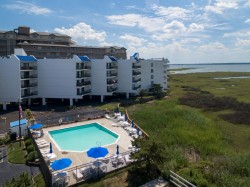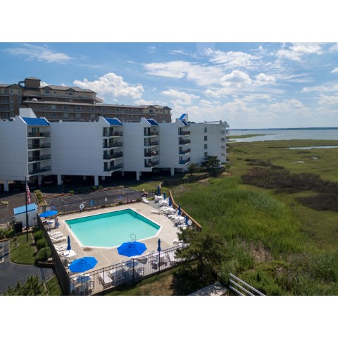 Bay Princess 119 is ideally located bayfront in midtown Ocean City, Maryland at 81st street, but still only a block away from the beach (right at a crosswalk). This lovely two bedroom, two bath condo is the perfect retreat with soothing beachy neutrals throughout and an open floor plan. A comfortable living room and separate dining area are adjacent to the fully equipped kitchen (drip/K-cup coffeemaker) with all you should need to whip up family meals or easily serve take-out on the breakfast bar. Step out onto the west facing balcony overlooking the pool to enjoy your bayfront view, especially in the evenings when all of the sunset colors are painted in the western sky. The Bay Princess amenities include elevators for ease of access, bayfront outdoor pool with deck for sunbathing, outdoor shower to rinse off after a fun day at the beach, and two parking spots. Sleeping up to seven guests, bed sizes include a king in the primary, a pyramid bunk and queen in the 2nd bedroom. Guest must supply sheets, towels, soaps and paper products. Full sized washer and dryer are in the condo for your convenience. An optional linen package is available for purchase and would be delivered to the condo on your day of arrival and picked up on your day of departure. The package would include sheet sets including pillowcases for each bed, and towel sets equaling the maximum occupancy of the condo. Property rents with Saturday to Saturday. Non-Smoking/Non-Vaping - two designated areas in parking lot for smoking . No pets permitted. Property owner does not permit group rentals to guests under the age of 25. We make every effort to ensure the accuracy of our properties including photos, descriptions, pricing and amenities shown above. Although they are deemed reliable, they cannot be guaranteed. Please be advised we do not advertise any properties on Craig's list.