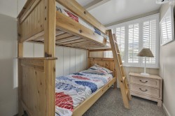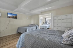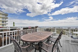 Escape to this wonderful 5-bedroom, 2-bath direct oceanfront townhouse—an inviting, spacious retreat that offers everything you need for your family beach vacation. With multiple sun-drenched decks and a bright, open-concept living area that flows onto a huge ocean-facing deck, you’ll enjoy breathtaking views, soothing sea breezes, and the sound of waves as your daily soundtrack. The second-floor living space boasts a stylish, fully equipped kitchen featuring gleaming granite countertops and sparkling new stainless steel appliances, making meal prep a breeze while soaking in the views. This level also includes two cozy bedrooms: one with twin bunks and another with a double bed and flat-screen TV, perfect for children or additional guests. On the top floor, the serene master bedroom features a king bed and a private oceanfront balcony, providing a secluded retreat for ultimate relaxation. Bedrooms four and five are thoughtfully designed with sliding barn doors dividing the space—one side features a queen and a full-size bed, while the other includes two queen beds. All top-floor bedrooms are equipped with streaming TVs, and they share a full hall bath with a shower/tub combo. Additional features include a convenient full-size washer and dryer on the ground level, an outdoor shower, and a covered carport with back-to-back parking for two cars. Nestled in quieter North Ocean City, this home is just steps from popular attractions like mini-golf and beloved eateries such as Ponzetti’s Pizza Pub, Nick’s Steakhouse, and many more local favorites. You’re just a short drive or bus ride to the famous Ocean City Boardwalk, with lots of shops, eateries, Fisher’s Popcorn, Thrasher’s Fries, and arcades and Trimper amusement rides! This property rents by the week (Saturday to Saturday) during the peak summer season and offers flexible 3+ night stays in the off-season. Whether you’re seeking relaxation, adventure, or a little bit of both, this charming coastal getaway delivers the ultimate beachside experience. An optional linen package is available for purchase for this property and would be delivered to the condo on your day of arrival and picked up on your day of departure. The package would include sheet sets for each bed and towel sets equaling the maximum occupancy of the condo. Non-smoking Non-Vaping. No pets, please. Property owner does not permit group rentals to guests under the age of 25. We make every effort to ensure the accuracy of our properties including photos, descriptions, pricing and amenities shown above. Although they are deemed reliable, they cannot be guaranteed. Please be advised we do not advertise any properties on Craig's list.