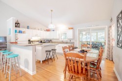 Enjoy this brightly decorated 3 bedroom and 2 bathroom home with huge 20 x 14 foot screen porch. Cook for the family outside on the patio with the gas grill or gather the family inside and enjoy the central air conditioning.. Nicely equipped single family home located on a WOODED LOT in Ocean Pines. Relax with the family in the open area floor plan, or take in the fresh air with an evening meal on the screen porch. Hardwood floors in the living room/dining room/kitchen area and granite counter tops in the kitchen. Room for the family with one King, one Queen, 2 sets of Bunk beds, and a Queen sleeper sofa. Home offers 4 T.V.'s, all flat screens, in living room and all 3 bedrooms. 2 DVD players. Living room T.V. is a smart T.V. There is a 2nd rental home within walking distance if you need two rental homes for your family. Property offers one parking pass for the 49th and 50th street Beach Club. NO LINENS OR TOWELS PROVIDED.