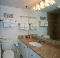 This is a 2 Bedroom Deluxe (Double Balcony) Unit, the Living Room and Master Bedroom have oceanfront balconies. Master Bedroom has a private bath, there is a 2nd full bathroom in the unit. We provide your initial set of towels, linens for all beds, paper towels, toilet paper, tissues, dishwasher detergent, dish washing liquid & laundry detergent, coffee, cream & sugar. We also provide an initial supply of standard bathroom amenities; soap, shampoo, etc. are also provided. The condo is furnished with a basic set of pots & pans, utensils, glasses, cups & dinnerware.