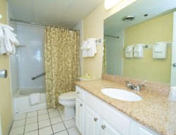 This is a 3 Bedroom Deluxe (Double Balcony) Unit (no den), the Living Room and Master Bedroom have oceanfront balconies. Master Bedroom has a private bath, there is a second full bathroom in the unit. We provide your initial set of towels, linens for all beds, paper towels, toilet paper, tissues, dishwasher detergent, dish washing liquid & laundry detergent, coffee, cream & sugar. We also provide an initial supply of standard bathroom amenities; soap, shampoo, etc. are also provided. The condo is furnished with a basic set of pots & pans, utensils, glasses, cups & dinnerware.