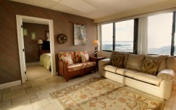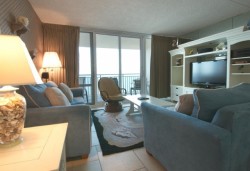 This is a 3 Bedroom Deluxe (Double Balcony) Unit (with den), the Living Room and Master Bedroom have oceanfront balconies. Master Bedroom has a private bath, there is a second full bathroom in the unit. We provide your initial set of towels, linens for all beds, paper towels, toilet paper, tissues, dishwasher detergent, dish washing liquid & laundry detergent, coffee, cream & sugar. We also provide an initial supply of standard bathroom amenities; soap, shampoo, etc. are also provided. The condo is furnished with a basic set of pots & pans, utensils, glasses, cups & dinnerware.