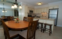 This is a 3 Bedroom Deluxe (Double Balcony) Unit (no den), the Living Room and Master Bedroom have oceanfront balconies. Beach view is slightly restricted by hotel roof. Master Bedroom has a private bath, there is a second full bathroom in the unit. We provide your initial set of towels, linens for all beds, paper towels, toilet paper, tissues, dishwasher detergent, dish washing liquid & laundry detergent, coffee, cream & sugar. We also provide an initial supply of standard bathroom amenities; soap, shampoo, etc. are also provided. The condo is furnished with a basic set of pots & pans, utensils, glasses, cups & dinnerware.