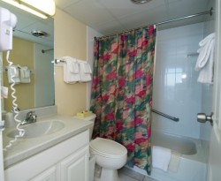 This is a 2 Bedroom Deluxe (Double Balcony) Unit, the Living Room and Master Bedroom have oceanfront balconies. Master Bedroom has a private bath, there is a 2nd full bathroom in the unit. We provide your initial set of towels, linens for all beds, paper towels, toilet paper, tissues, dishwasher detergent, dish washing liquid & laundry detergent, coffee, cream & sugar. We also provide an initial supply of standard bathroom amenities; soap, shampoo, etc. are also provided. The condo is furnished with a basic set of pots & pans, utensils, glasses, cups & dinnerware.