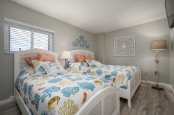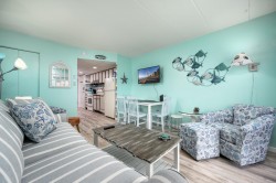 Decatur House 201 is an ocean view condo located on 12th street and the boardwalk in Ocean City, Maryland. This one bedroom, one bathroom condo is newly renovated with a furnished balcony that has views of the Atlantic Ocean and the famous boardwalk. It is the perfect place to call home for a few days or a whole week, while enjoying the beach, boardwalk, indoor pool, local restaurants, entertainment, and shops. This unit comfortably sleeps five people with a queen-size bed and a single bed in the bedroom and a queen-size sleeper sofa in the living room. Property rents any 3 nights all season. Decatur House 201 has the following amenities: indoor pool, one reserved parking space, an elevator, TV, stack washer and dryer, refrigerator, microwave, coffee maker, toaster, dishes, silverware, utensils, pots and pans, stove, disposal, dishwasher, ceiling fans, and an outdoor foot shower. Guest supplies sheets, towels, soaps and all paper products. There is a washer and dryer located in the condo for your convenience. An optional linen package is available for purchase for this property and would be delivered to the condo on your day of arrival and picked up on your day of departure. The package would include sheet sets for each bed and towel sets equaling the maximum occupancy of the condo. Non-smoking/vaping. Smoking on balconies and in common areas is prohibited by the building management. Smoking is allowed in the parking lot only. No pets, please. The property owner does not permit group rentals to guests under the age of 25. We make every effort to ensure the accuracy of our properties, including photos, descriptions, pricing, and amenities shown above. Although they are deemed reliable, they cannot be guaranteed. Please be advised that we do not advertise any properties on Craigslist.