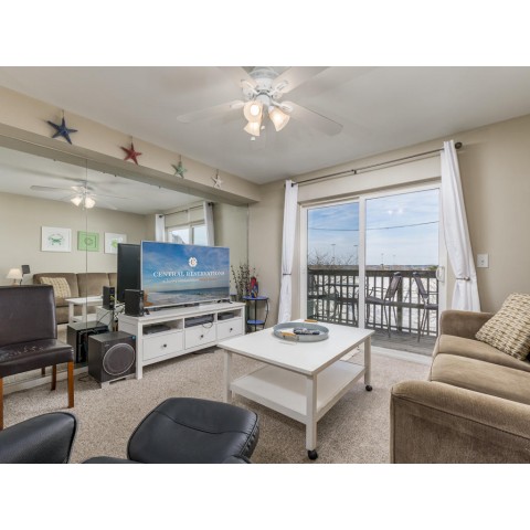 Modern one bedroom, one bath condo located bay side overlooking North Side Park. You will find the comforts of home with WIFI, full kitchen, central air and washer and dryer and two televisions with Roku. This condo can accommodate a family of 5. Bed sizes include a queen and a pyramid bunk (one double and one single) in the bedroom and a queen sleep sofa in the living area. Guest provides sheets, towels, soaps and paper products. An optional linen package is available for this property. Linens would be delivered to the condo for your arrival. A set would include a sheet set for each bed and a towel set for the occupancy of the condo. You will be able to add this option to your reservation for a fee if you wish. Please note this building does not have an elevator and has a spiral staircase in the condo. Non Smoking Non Vaping No Pets Our property owners do not permit group rentals to guests under the age of 25 We make every effort to ensure the accuracy of our properties including photos, descriptions, pricing and amenities shown above. Although they are deemed reliable, they cannot be guaranteed. Please be advised, we do not advertise any properties on Craig's list. If you see the content of our listings on Craig's list it is not a legitimate ad from Central Reservations.
