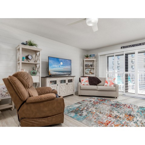 Stunning 2 bedroom 2 bath condo in desirable North Ocean City. This condo, located in the Hawaiian Village complex, is spacious and beautifully decorated. Located on the ocean block, this condo has been updated from top to bottom and is steps from the beach. Enjoy morning coffee on the balcony, which is accessible from the living area or the bedrooms, and gives you a peek of the ocean. This condo can comfortable occupy your family of 6, with 2 king beds and a full sleep sofa. Guest supplies sheets, towels, soaps and paper products. There is a washer and dryer in the condo for your convenience. Property rents Saturday-Saturday all season. An optional linen package is available for this property. Linens would be delivered to the condo for your arrival. A set would include a sheet set for each bed and a towel set for the occupancy of the condo. You will be able to add this option to your reservation for a fee if you wish. There are 3 televisions, one in the living area and one in each bedroom. All the comforts of a great vacation are included: free wifi, central air, elevator, indoor lap pool, hot tub and outdoor pool, and a full kitchen. (Please note, the fitness room is for owner's use) Please note** The hot tub is and will be closed until repairs are completed. The indoor pool will shut down 10/26 for repairs. Non-smoking/Non-Vaping building. No pets, please. Our property owners do not permit group rentals to guests under the age of 25. We make every effort to ensure the accuracy of our properties, including photos, descriptions, pricing, and amenities shown above. Although they are deemed reliable, they cannot be guaranteed. Please be advised, we do not advertise any properties on Craigslist. If you see the content of our listings on Craigslist it is not a legitimate ad from Central Reservations.