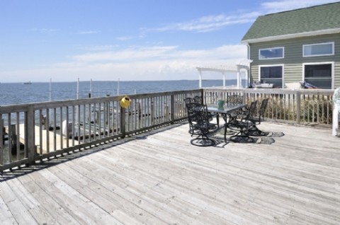 Check-in 3 p.m. - check out 10 a.m. Check in location is 8202 Coastal Hwy, Ocean City, MD 21842. For arrivals after 5 p.m. please call before 5 p.m. to make late check-in arrangements. Awesome views of Ocean City skyline at night. Direct bay front with gorgeous views and sunsets. House features fully equipped kitchen, washer/dryer, central a/c, TVs, DVD, WI-FI, pull out sofa, large bay front deck, boat dock (bring your boat and jet ski). Community outdoor swimming pool, tennis court. Zoning regulations mandate that this unit be occupied by families only. The town of Ocean City defines "family" as consisting of two or more individuals related by blood or marriage OR four or fewer unrelated individuals. Non smoking, ABSOLUTELY NO PETS. Linens, towels, paper products or soaps are not provided.