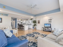 St Kitts 103 is a unique 5BR, 4.5 bath single floor condominium with great ocean views. Just one building back from the ocean. Enjoy beautiful hardwood floors, a designer kitchen and 2,650 square feet of living space. Large wraparound balcony with great ocean views. Three master suites with a private bath. Two bathrooms with hall access and one half bath by laundry room. Bed sizes include 1 king, 2 queen, Pyramid Bunk with trundle, 2singles and a queen sleep sofa. Guests provide sheets, towels, all soaps and paper products. An optional linen package is available for this property. Linens would be delivered to the condo for your arrival. A set would include a sheet set for each bed and a towel set for the occupancy of the condo. You will be able to add this option to your reservation for a fee if you wish. Non-smoking Non-vaping. No pets, please. This property rents Saturday to Saturday. . Our property owners do not permit group rentals to guests under the age of 25 We make every effort to ensure the accuracy of our properties including photos, descriptions, pricing and amenities shown above. Although they are deemed reliable, they cannot be guaranteed. Please be advised, we do not advertise any properties on Craig's list. If you see the content of our listings on Craig's list it is not a legitimate ad from Central Reservations.